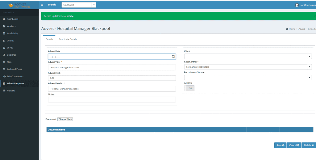 You will see that the CV of the candidate has been added onto the advert. You now need to click ‘save’.