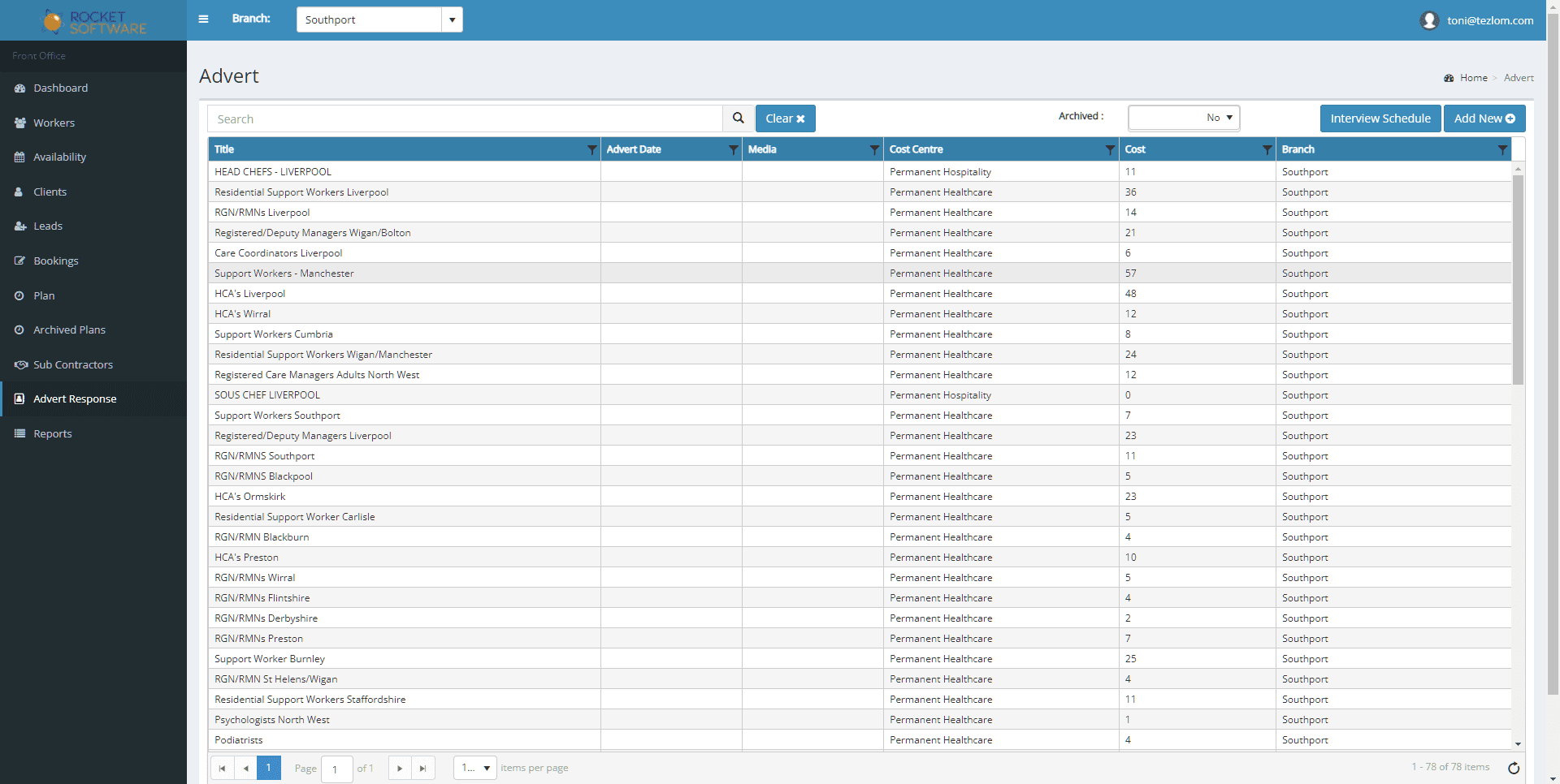 Eventually, you will have a system filled with different job roles in different areas so you can continue adding to the adverts you’ve created rather than creating new.