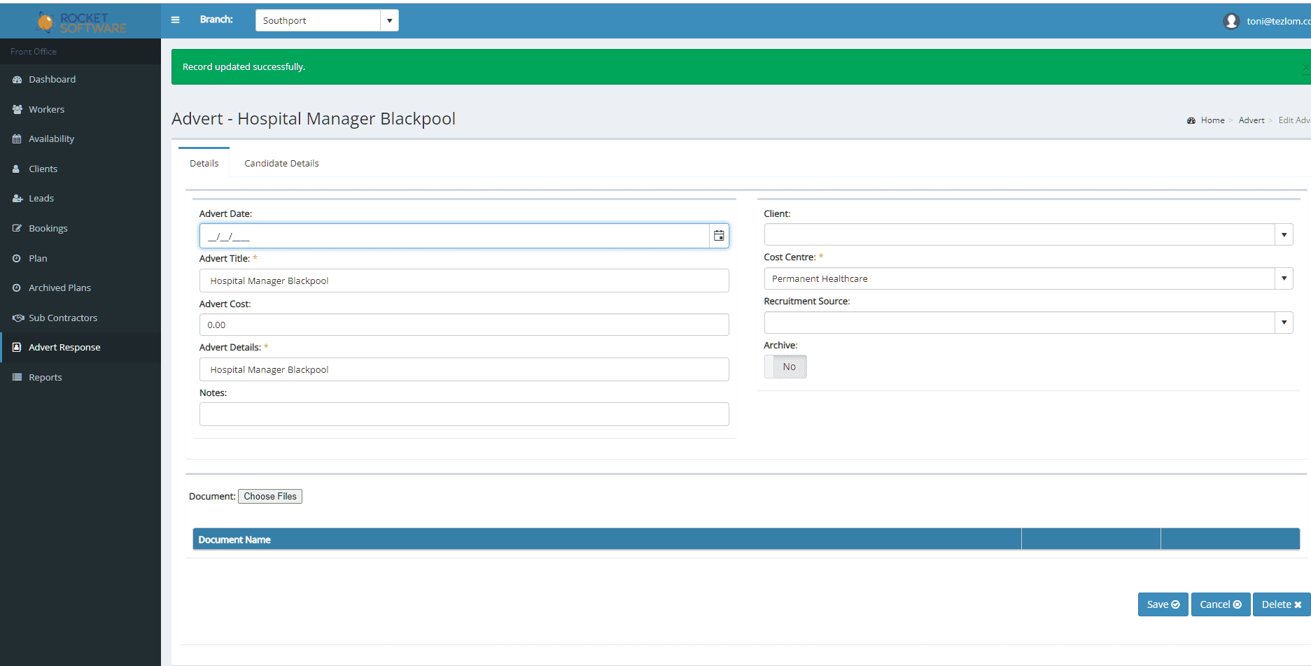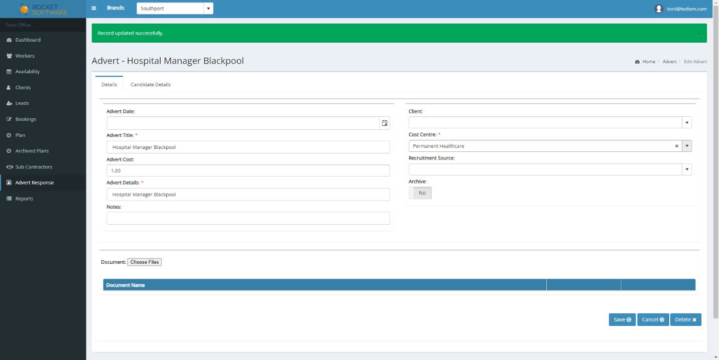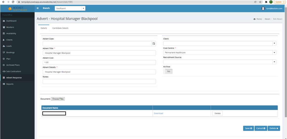 You will see that the CV of the candidate has been added onto the advert. You now need to click ‘save’.