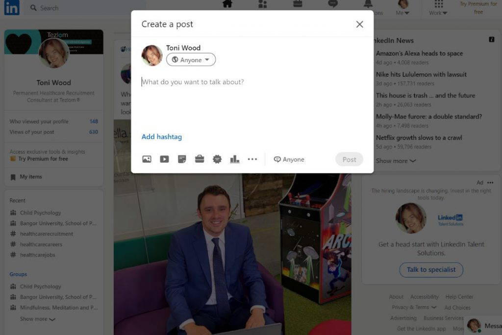 If you haven’t already, create a LinkedIn account, get it all set up, then follow the below steps on how to create a post.