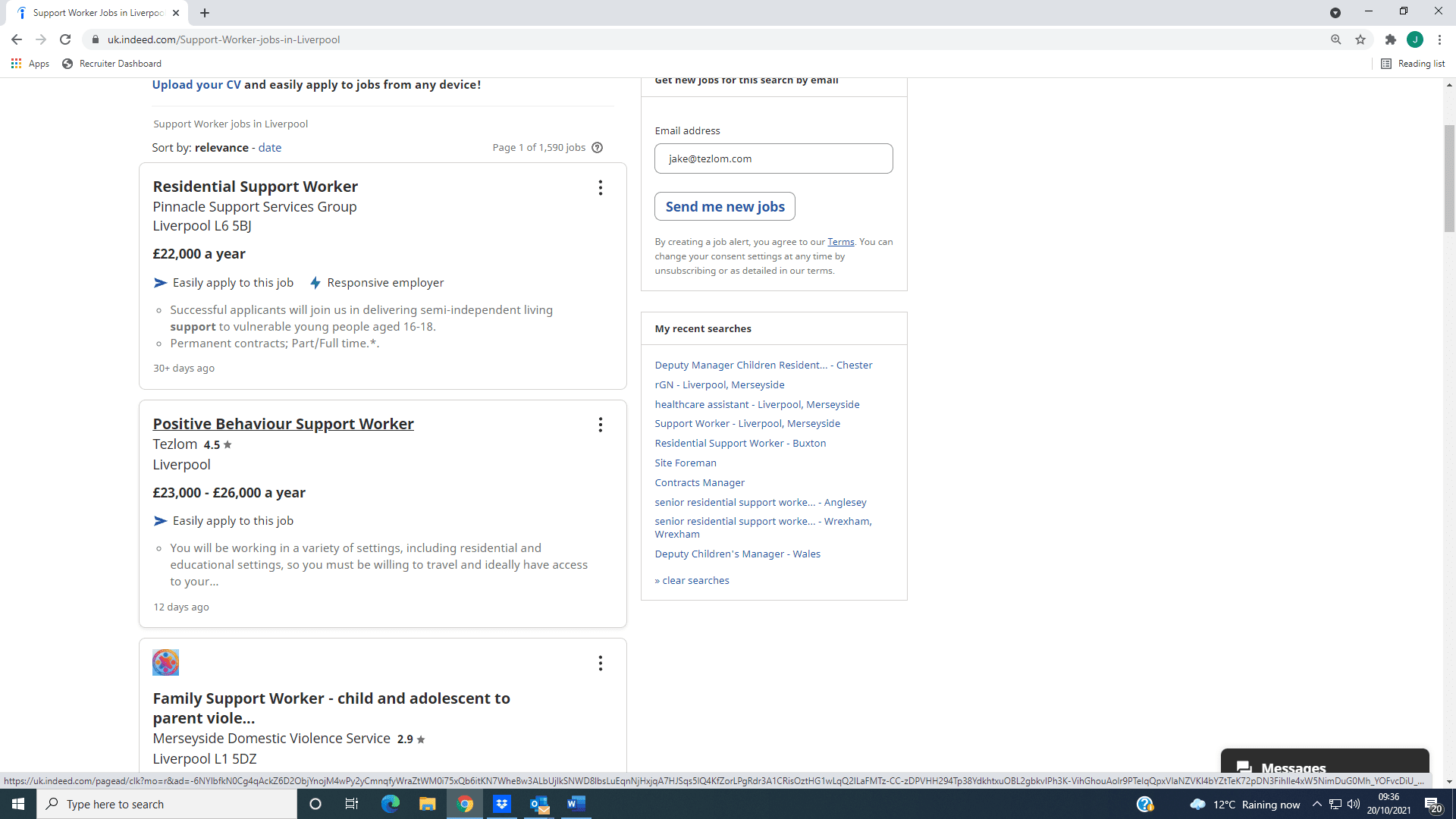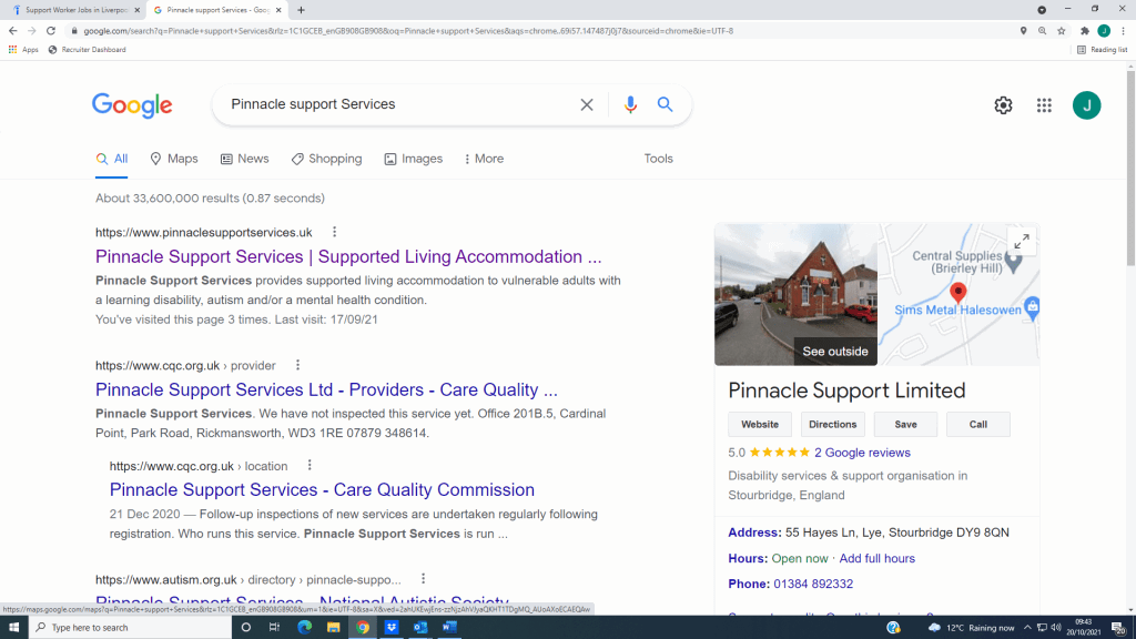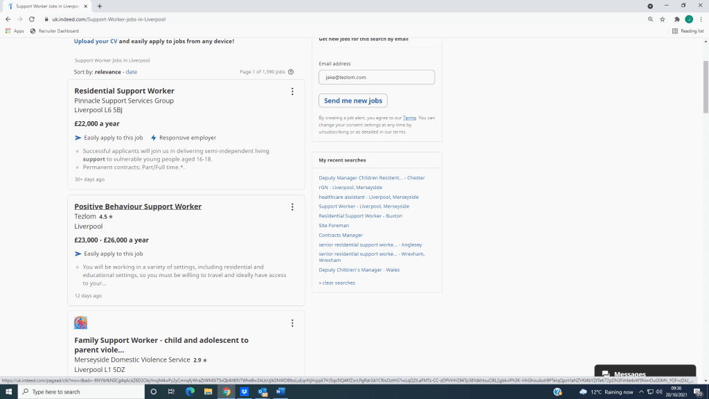 - Open a Google Tab, and search ‘Support Worker (your area) Indeed’. This will bring up a list of results, with the top result being a tab where there is a list of jobs as a jobseeker. Click on this.