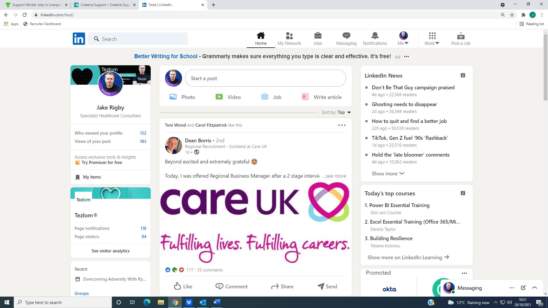 - Once you have pressed search, you will have a variety of results with ‘people’ ‘jobs’ ‘posts’ etc. Click on the ‘jobs’ tab like below: