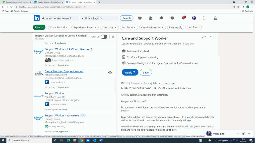 - This will now take you into a list of companies and roles across Liverpool. You now have these at your disposal such as below: