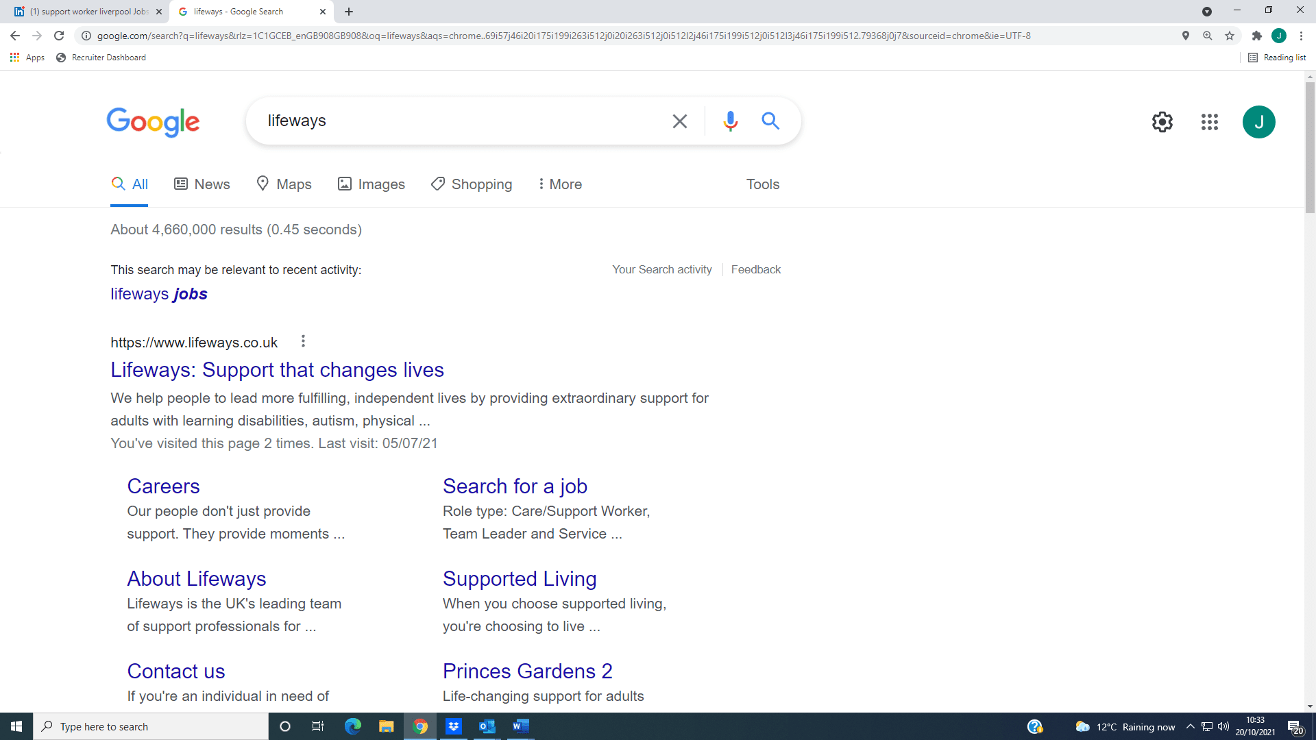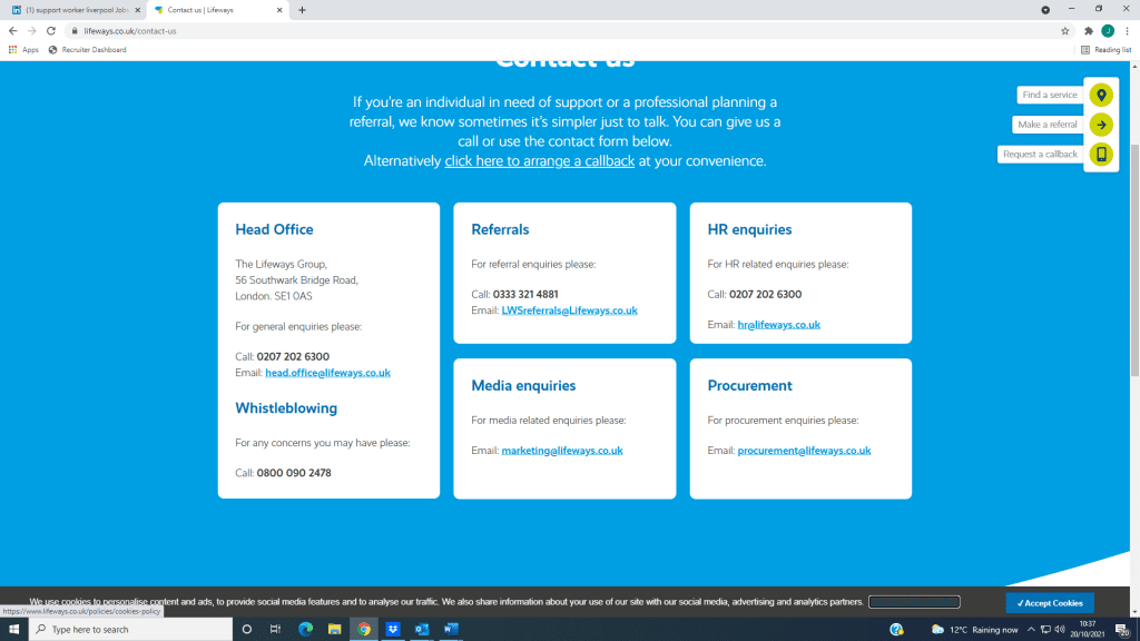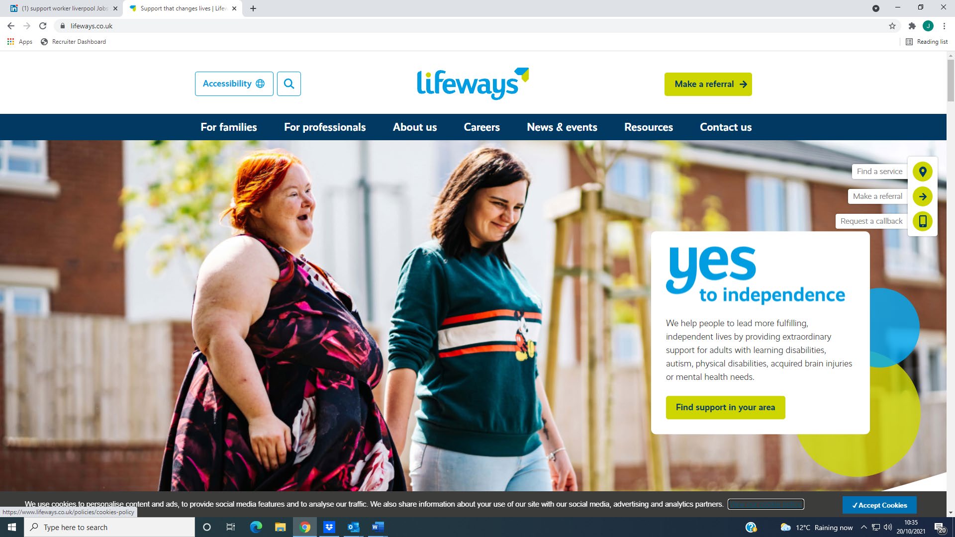 - Type in ‘Lifeways’ into the tab and press search. This will appear below. As you can see Lifeways is the first thing that comes up, so click into their website here: